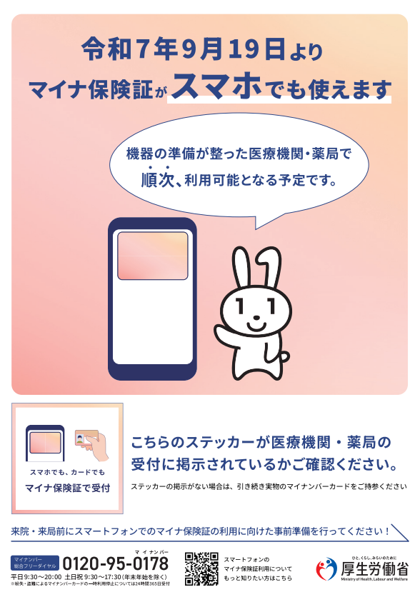 9/19(金)より、スマートフォンをマイナ保険証としてご利用できるようになります。