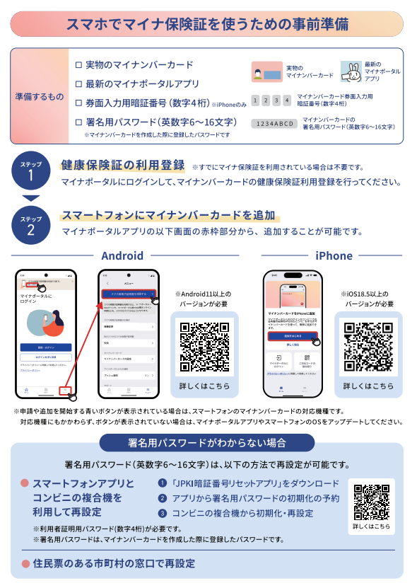 詳しくは厚労省の「スマートフォンのマイナ保険証利用について」のページをご覧ください。 https://www.mhlw.go.jp/stf/newpage_60802.html